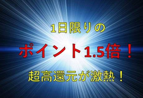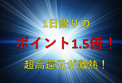 皆様お待たせしました!!来ました、ついに来ましたね~!1日限りの1.5倍ボーナス、つまり150%還元の日になりました!